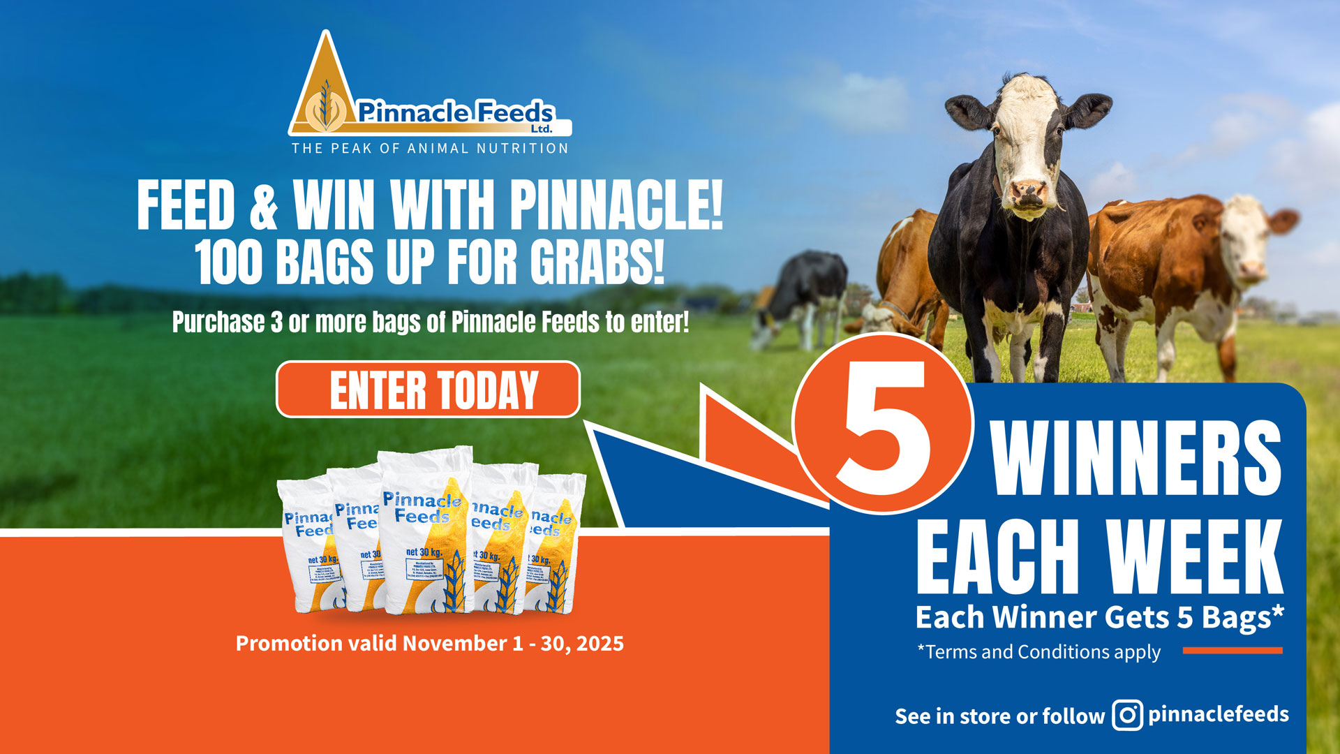 1. Purchase 3 or more bags of Pinnacle Feeds for your chance to win.